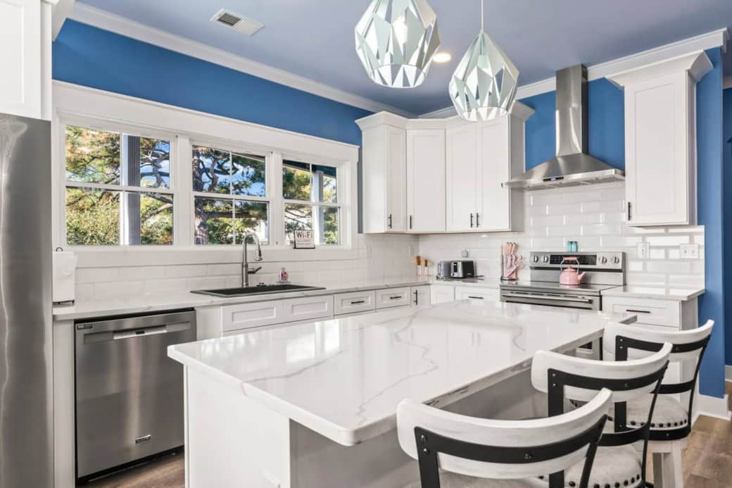 A18 in Ocean Lakes 5br/4.5ba Direct deck access from 4 of the bedrooms. 3 bedrooms have ensuite bathrooms with their own coffee makers, so you don't have to leave your suite until you've had your coffee. Great location right on the canal, overlooking Sand Dollar Lake and views of the ocean!
