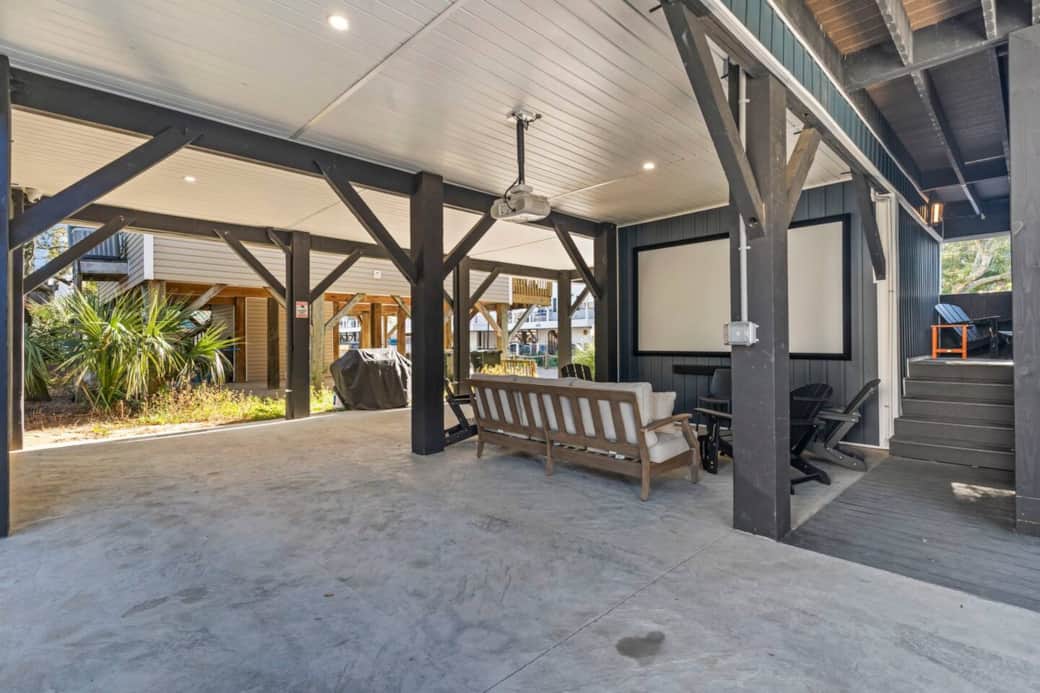 120" projection screen underneath the house that's perfect for watching your favorite sport or have family movie night!